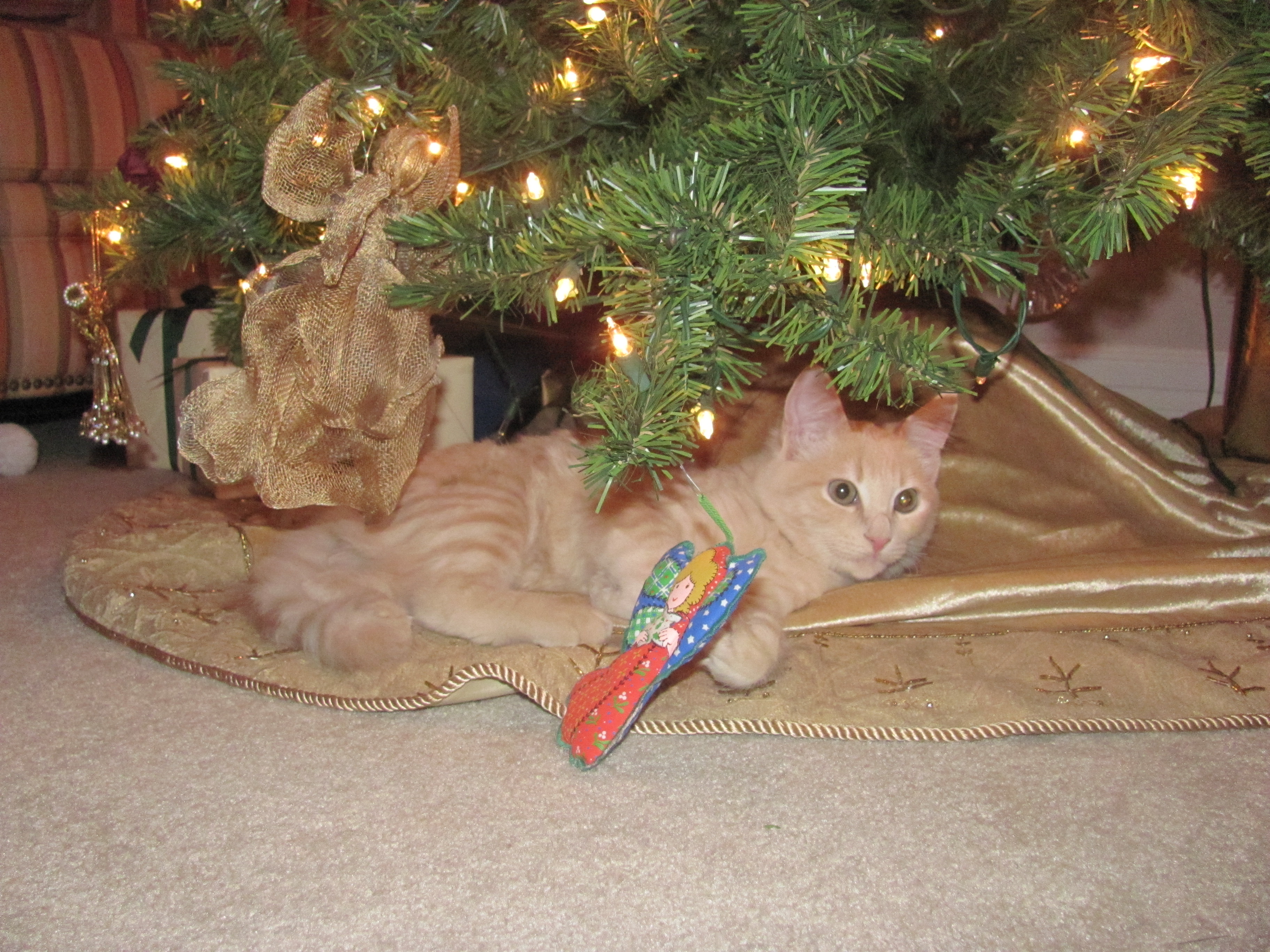 As I’m walking out back in the woods again, I look up toward my back yard and, yep, there’s Finn, darting across the lawn back toward the front of the house . Relief washes over me as I see my two girls attempt to corral him, but it immediately turns to dismay as they only succeed in chasing him under our neighbor’s fence. I shoo them back in the house (after taking the cat-food cannister from my older one) and call to Finn. He peeks up from under the fence and mews at me a few times, probably thinking I’m going to scruff the shit out of him if he gets close enough. His mouth is wide open as if he’s panting – this happens when cats get stressed out, I’m told (though I’m also told it might suggest a heart ailment, among other expensive problems). I call to him a few times in my reassuring, “no, I’m not going to scruff the shit out of you” voice as he weighs his current freedom against his moral responsibility to me as my pet (hey, he is named Finn). Love wins out (I’ll tell myself it wasn’t a love of ice cream…)